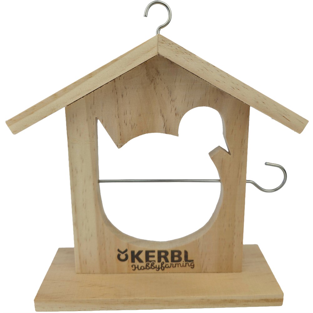 Talgbollshållare tillverkad i trä. En metallhållare håller talgbollen på plats. Passar till mindre talgbollar eller exempelvis ett äpple.