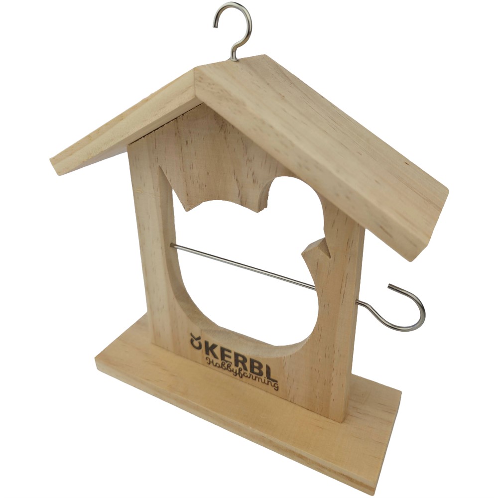 Talgbollshållare tillverkad i trä. En metallhållare håller talgbollen på plats. Passar till mindre talgbollar eller exempelvis ett äpple.