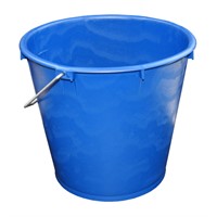En kraftig kalvhink i plast som rymmer 7 liter. Hink med metallhandtag och volymgradering.