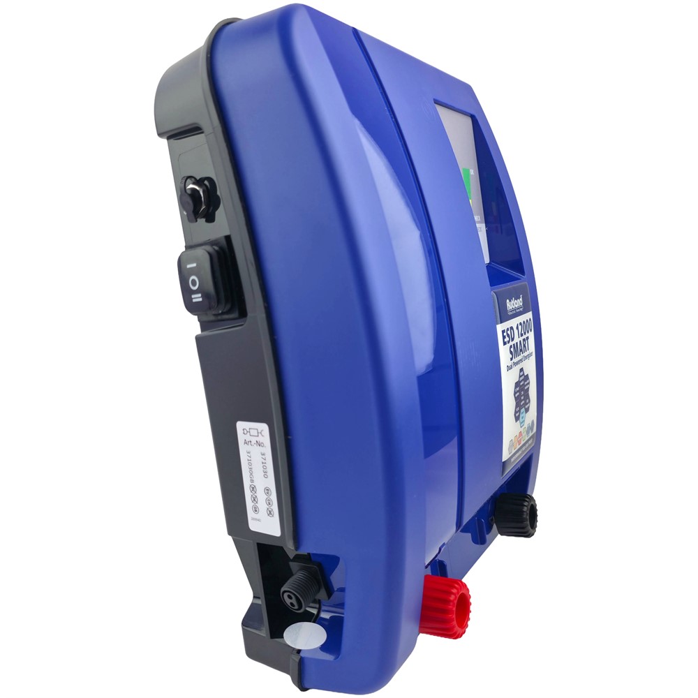 Rutland ESD 12000 SMART är ett appstyrt elstängselaggregat som kan drivas antingen med 12 V batteri eller via 230 V nätanslutning. Aggregatet klarar långa stängsel (upp till 50 km stängsel vid liten påverkan från vegitation) tackvare 12J lagrad energi och 8J utgående energi.